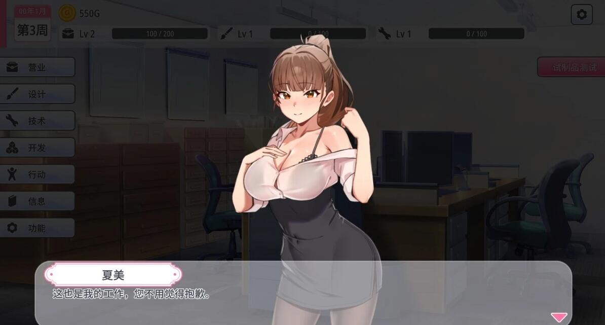 1.点击鼠标,提升营业、设计、技术各等级。