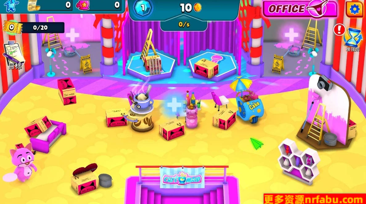 点击女仆们来收集钱财,升级她们的服务,让她们能够更好地招待客人,赚取更多的收入。