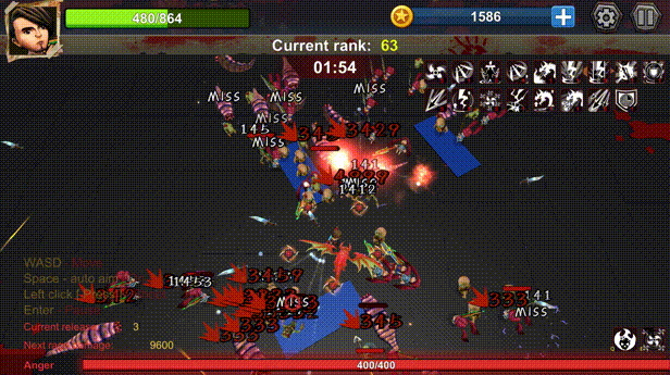 主动技能怒气爆发,集满怒气条即可释放,每次释放怒气后,叠加下一次怒气基础伤害!