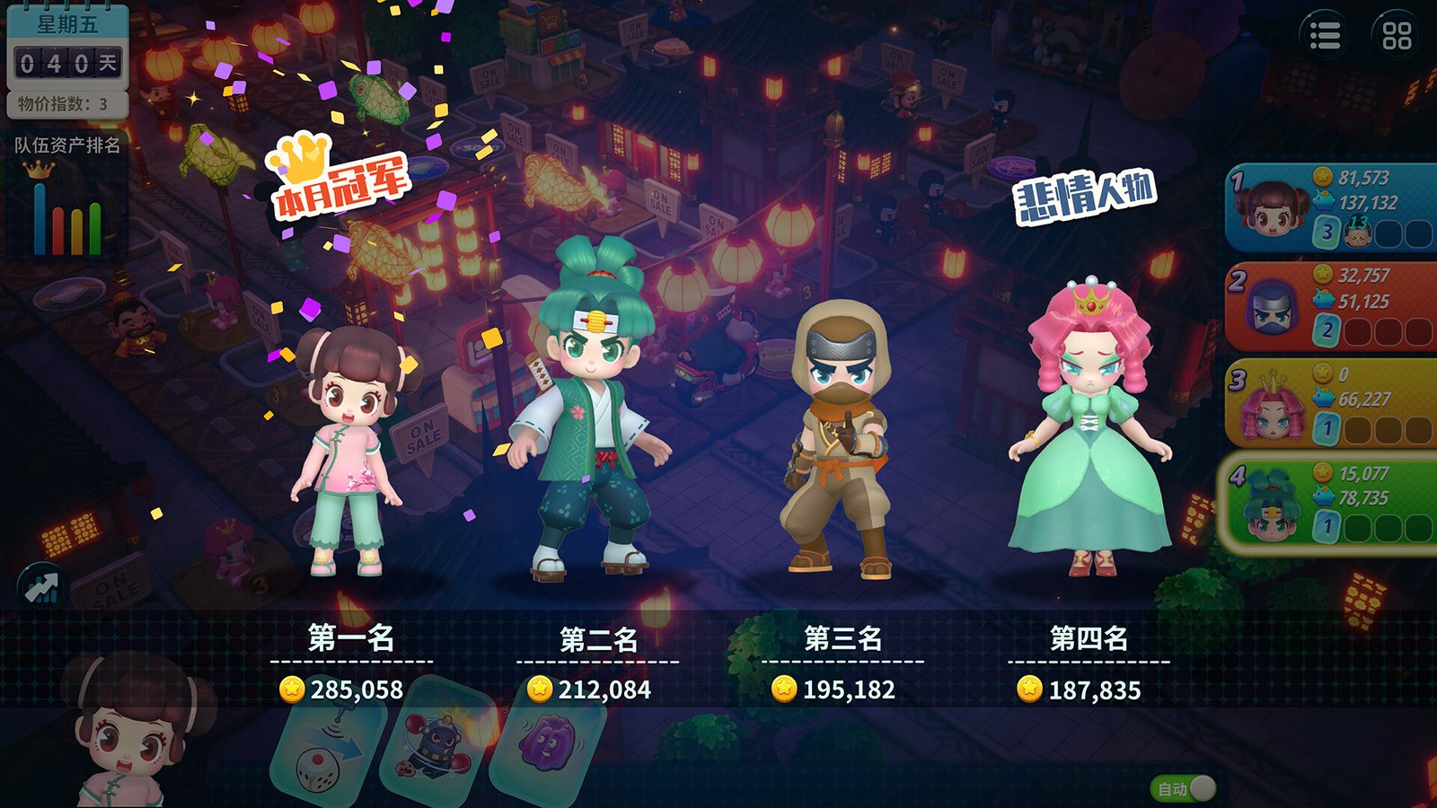 比赛中,当你路过银行时,可以自由调整现金和存款的比例。现金是投资地产、购买卡片不可缺少的,存款则可以在每月银行结算时收获一笔不少的利息。如果正在进行的是本地游戏,你还可以使用存款投资股票,低买高卖、适时调仓,赚取一笔额外的金钱收益。