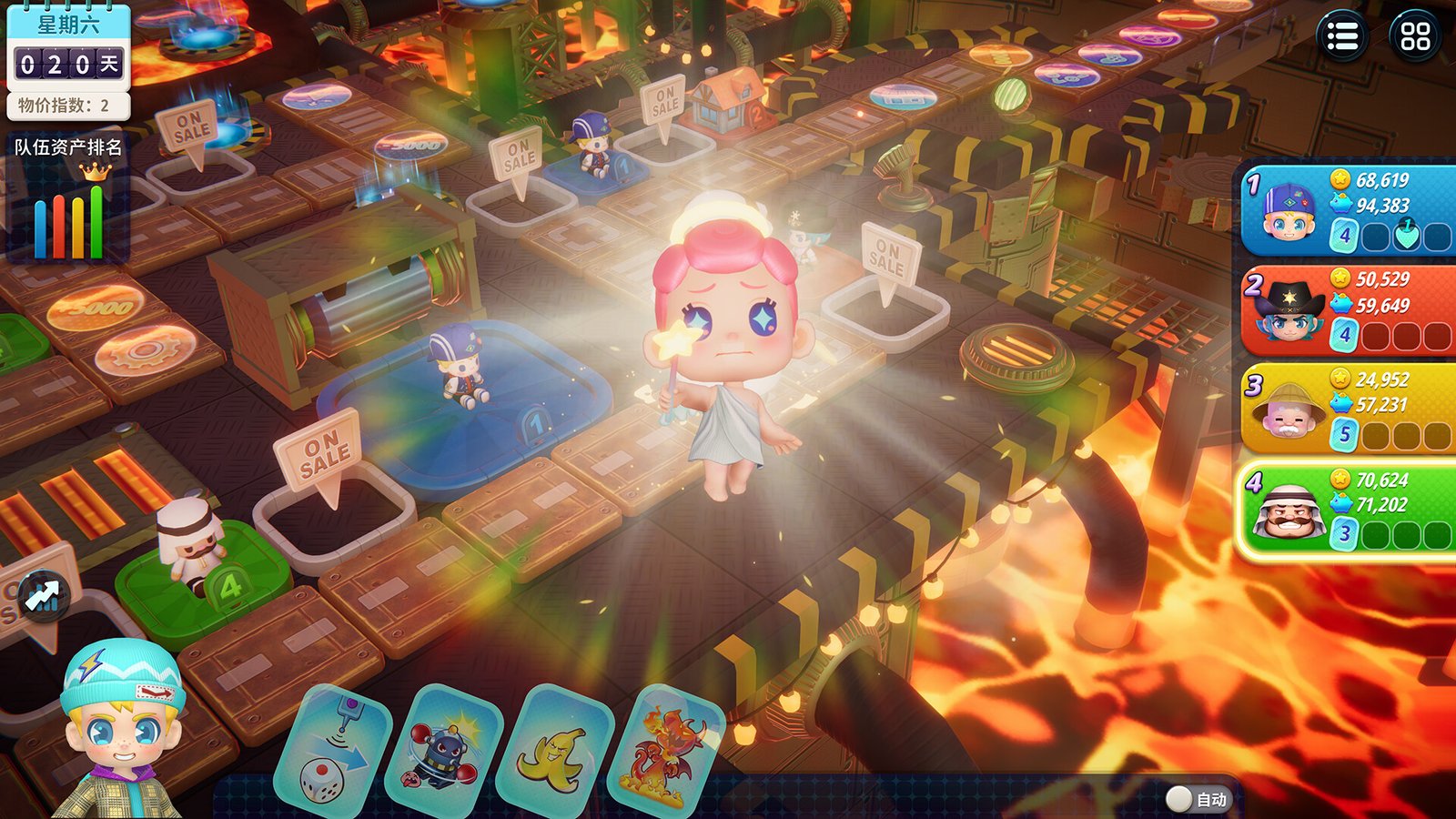 《大富翁11》可供本地游玩和在线游玩,支持多控制器。你可以根据自己的喜好创建自由比赛或者挑战比赛,并自定义比赛参数。在比赛中,你需要投掷骰子来决定自己的前进步数,通过投资地产、买卖股票、使用卡片等方式赚取金钱。比赛结束时,唯一未破产或资产最多的队伍为获胜方。
