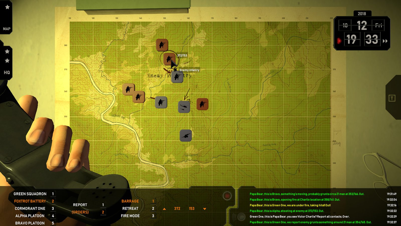 在Radio Commander中,玩家可以体会到和以往的经典战略游戏迥然不同的体验。我们做出了大胆的尝试,相比于以往的即时战略游戏,游戏在做出决策方面让玩家有更多的参与度和真实感。你需要询问实时情况,听取汇报,派遣直升机和后方部队来打败远在战场上的敌人。 剧情代入 体验陷入血腥、混乱、道德模糊的越南冲突之中的士兵及其指挥官的故事。你还要面临诸如被困在战区的平民、中情局阴险的行动和令人头疼的政治压力的情境。游戏中还会出现越战中出现的经典桥段,比如野战排、合金弹头或者启示录。让自己在与越军的交火中做出正确的选择,实属不易。 你的命令举足轻重 你将决定士兵们的命运。你面临的选择将直接影响游戏进程。这些也会影响你的观点。你究竟如何抉择?在游戏中,你必须做好面对什么是正义,苍生的价值或者老套的宣传口号的准备。大胆想象Radio Commander不是一款无动作游戏。你将在一位指挥官的帐篷中,使用一台无线电台和一张地图进行游戏。你将在听取数小时的汇报,关注战术地图中进行游戏。你的决定将会影响众多生命的结局。就像真实情况中的一样,你并不会看到战场上的点点滴滴和各种景象。你只有一张地图,以及你的军事技术。你需要认真倾听并作出正确的选择。正因为如此,玩家会更专注于每一次决策的下达。 从众多选项中进行选择 你不仅要指挥步兵、空军和野战炮兵,还要指挥强大的空中支援部队。只要你愿意,你可以呼叫可点燃丛林的汽油弹,或者制造毁灭性的爆炸。让敌军尝尝火海的滋味了吗?你确定你的士兵在足够的安全距离之外吗?这样的行为是正当的吗? 体验游戏深层机制 在游戏表层叙事之下,你没有看到的,是一套复杂的模拟系统。在Radio Commander中,每一军事单元和人员都是一组独立的数据,你需要关注军队士气,补给,甚至是人员体力。所有这些都是影响士兵在复杂地形和极端越南天气下的前线作战结果的重要因素。如果你的直升机由于油量不足需要咋丛林里迫降时,你该怎么办?你是否会在可能让更多人搭上性命的情况下派出救援部队,下达救援任务? 与军队同在 在你指挥下的军队不只是地图上的一个个标识。他们都是有血有肉的人,他们也有自己的想法、困境、长短之处。互相信任是至关重要的,他们需要你冷静的判断和指挥,而你需要他们出色地作战。探寻并发现数百段真实的对话和情境,在如今返回当时的战场,作出不一样的决定,听取不一样的战局。 游戏体验 - 9个生涯任务(每个任务都可以通过数种不同的方法完成), - 9个动画简报, - 15种作战单位,包括步兵、撤离直升机、炮艇、野战炮兵、空中侦察部队、装甲运兵车M113和携带F4幻影喷气机的凝固汽油弹(每一个单位是一组独立的数据,并使用不同的声音与指挥官通信), - 全程配音, - 超过200条无线电通讯信息, - 超过600条军队和指挥人员之间的剧情对话.