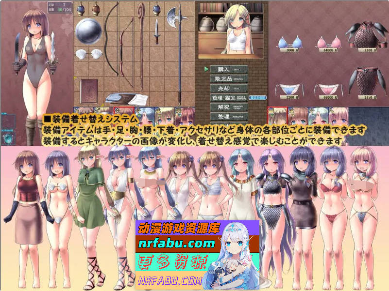 装备道具可以在手、脚、胸部、腰部、内裤、饰品等身体各部位装备。