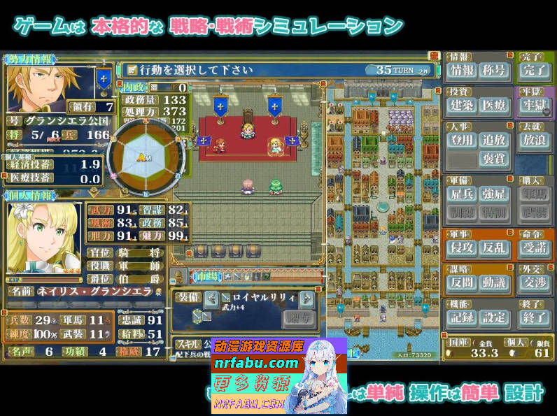 可以选择自己喜欢的角色开局,招募心仪的角色成为伙伴或部下,甚至遭遇背叛……凭借自由的指挥与权谋策略,在这个世界中生存下去吧。